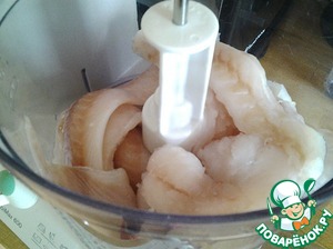 • Тем временем занимаемся рыбой. Мороженую сайду ( можно взять треску, хека, тилапию )моем, хорошенько отжимаем и перемалываем в комбайне или пропускаем через мясорубку с крупной решеткой. Делаем это по возможности оперативно. Почему?