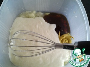 • Тем временем к остывшей манной каше добавляем соус "Терияки ", горчицу и натертую на терке луковицу. Моя луковка была совсем " игрушечная ", 30 г, мне кажется, что это оптимальное количество лука. Но вы можете добавить лука больше или не добавлять вовсе. Перемешиваем до однородности.