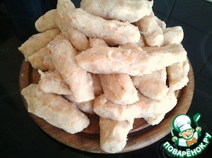 • В рыбный фарш добавляем манную кашу, 3 ст. л панировочных сухарей, соль-перец, и быстро мокрыми руками лепим нашу "поленницу". Если нас отвлек телефонный звонок, задача по математике/ботанике/ гармонии или подобный катаклизм, срочно убираем фарш в холодильник. С холодным фаршем легче работать, он не "убегает".