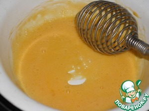Над кастрюлькой с горячим паром немного взбить венчиком желтки.