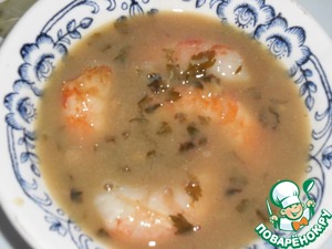 Выложить теплые креветки в глубокую посуду и залить соусом.