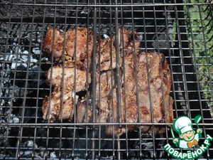 Смазать решетку растительным маслом, выложить на нее ребрышки и жарить на горячих углях до готовности 15-20 минут.
