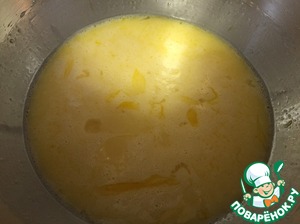 Сгущеное молоко и яйца хорошо перемешиваем до однородности.