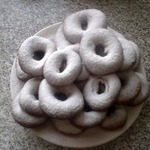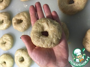 Или можно сделать пончики с дыркой. Для этого проделыванем отверстие посередине с помощью горлышка бутылки.