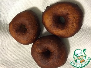 Готовые пончики выкладываем на бумажное полотенце, чтобы стекли остатки жира.