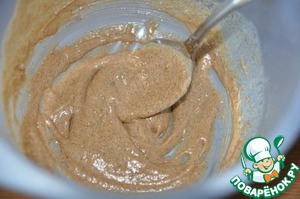 Кладём 1/4 часть теста в форму. Сверху кладём по пол-ложке коричного теста. -