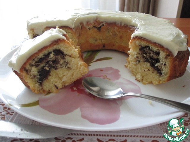 Наносим глазурь на остывший кекс, по желанию посыпаем кондитерской посыпкой.