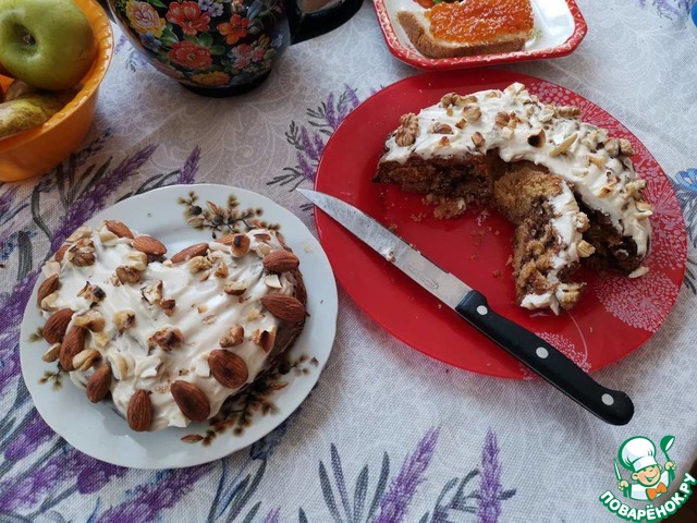 Из данного количества получается небольшой кекс размером на 18 см в диаметре.