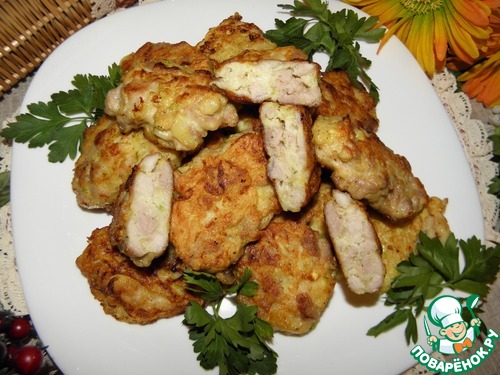 Второй вариант: так же приготовить кляр, мясо нарезать мелкими кубиками
