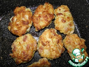 Так же зарумянить до корочки с одной стороны, перевернуть на другую, накрыть крышкой и довести до готовности.