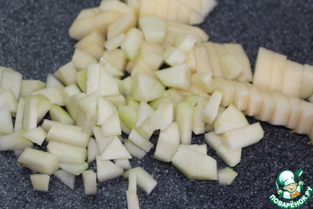 Груши очистить от кожицы и сердцевины. Мякоть порезать небольшими кубиками.