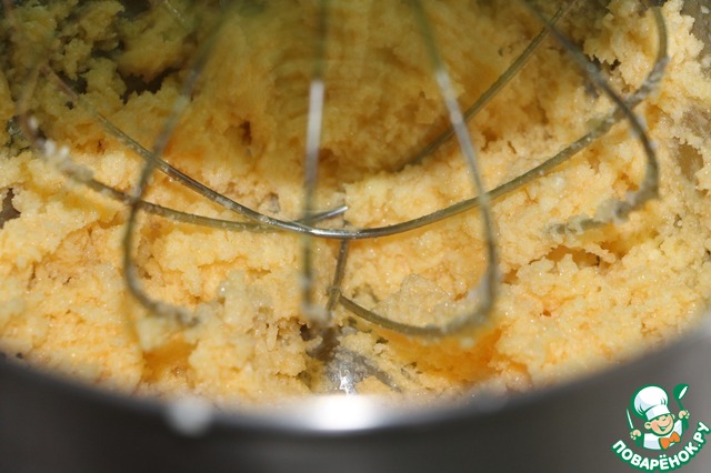 Смешать размягченное сливочное масло с сахарной пудрой и желтками до однородности.