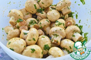 Смешать половину петрушки с остальными ингредиентами маринада и залить им грибы. Оставить на 15 минут.