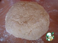 Приступим, собственно к формовке. Отрываем кусочек теста, на присыпанном мукой столе лепим небольшую лепешечку. |