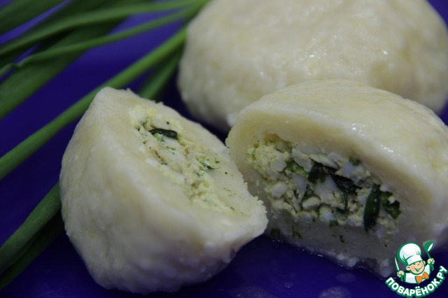 Описание: Пызы - сочные, простые в приготовлении и довольно экономные белорусские картофельно-творожные пирожки, близкие родственники галушек, колдунов. Вариантов рецептов множество, вот решила поделиться таким интересным вариантом их приготовления. А что особенно радует, начинка может быть любой, но так как в это время года актуальна "весенняя" начинка - яйца+лук, представляю Вам именно ее. Заинтересовало - не проходите мимо, не пожалеете!!!