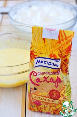 Отделить белки от желтков. Белки взбить со щепоткой соли в крепкую пену.