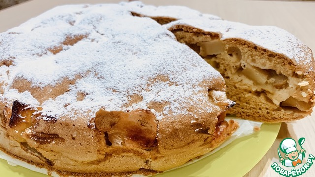 [+5]Пекла 1/2 порции в мультиварке 80 мин. Яблок надо было взять в два раза побольше и насыпать их просто поверх теста.