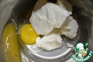 Соединить яйцо с творогом.
