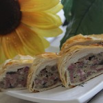 - Тесто слоеное бездрожжевое (две пластины) — 400 г