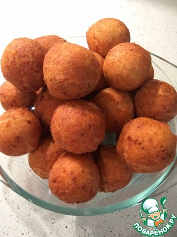 Опускаем шарики в разогретое масло и жарим на слабом огне до приятного золотистого цвета.