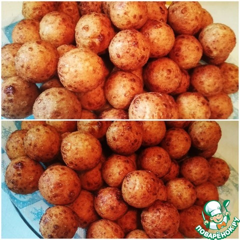 Из теста сформировать шарики, примерно величиной с грецкий орех, можно чуть меньше даже.