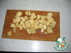 Порезать картофель на четвертинки, если крупный, то на 6-8 частей.