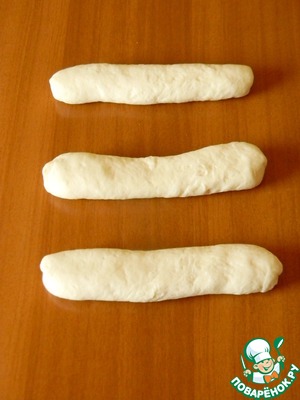 Каждую часть раскатать в овальную лепешку. Подвернуть тесто с каждой стороны в центре соединить, сформировать булочки. -