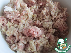 Мясо с луком и чесноком пропустить через мясорубку с мелкими дырочками.