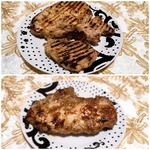 Если желаете - стейки можно подсолить ( я не солила), смазываем их маринадом со всех сторон и оставляем мариноваться (закрыв плёнкой) в холодильнике на 2-3 часа (можно больше)