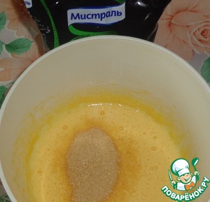 Яйца разделяем на белки и желтки. Взбиваем желтки с тростниковым сахаром ТМ "Мистраль" 1-2 минуты.