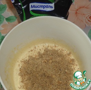 Затем добавляем молотые орехи. Перемешать.