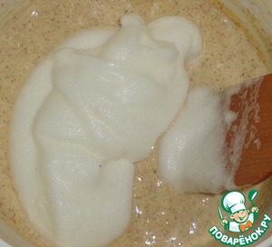Взбиваем в крепкую пену белки и добавляем в тесто. Перемешать.