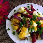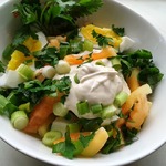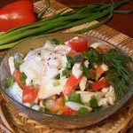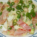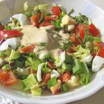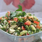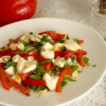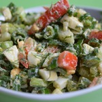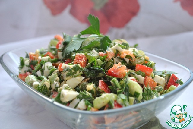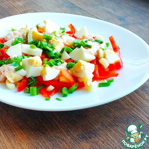 Салат из зеленого лука, яйца и болгарского перца. Предлагаю простой и легкий салат с зеленым луком, яйцом и красным болгарским перцем. Рецепт встретился в инете, автор предлагает заправить салат майонезом. Я решила сделать соус, предлагаю познакомиться.