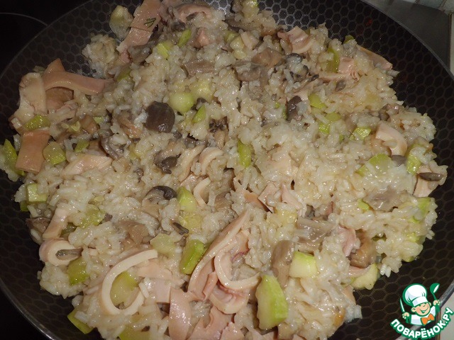 Рецепт «Рис с кальмарами и кабачком»: