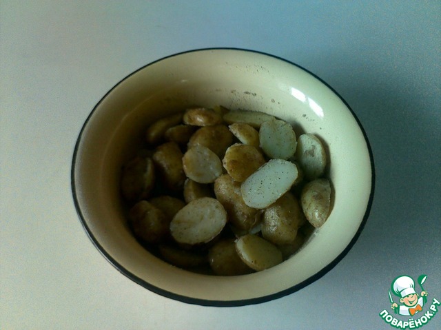 Что делать большому лентяю с маленькой картошкой? Нет никакого желания и терпения её чистить. И так сойдет. Так и родился рецепт этого необыкновенно вкусного блюда. Причем не обязательно использовать только молодую картошку, я так готовлю её всю зиму. Благо у мелкой картошки тонкая шкурка. Главное тщательно её отмыть и удалить глазки.