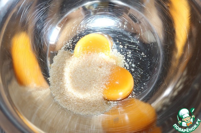 Отделяем белки от желтков. Желтки растираем с сахаром до бела и добавляем крахмал. Хорошо перемешиваем чтоб не было комочков. Отдельно взбиваем белки с соком лимона (лайма) до устойчивых пиков.