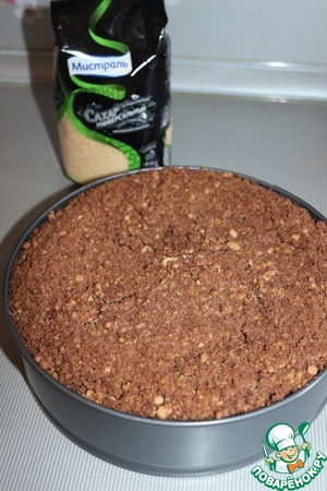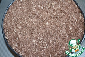 ... на нею выкладываем вторую половину начинки. Сверху посыпаем оставшейся крошкой (не придавливая).