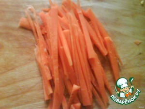 Добавить морковь, перец и розмарин. Налить еще воды (80 мл). Готовьте не до размягчения, оставьте овощи крепкими.