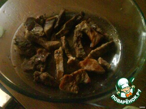 Выложите мясо в огнеупорную посуду, смазанную раст. маслом. Добавьте соевый соус и соль.
