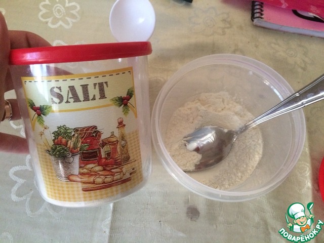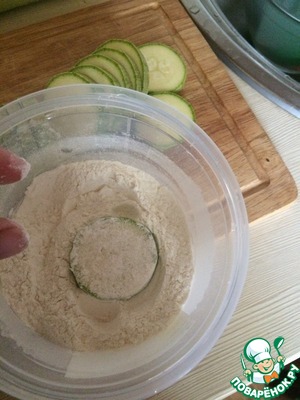Смешиваем в отдельной посудинке муку и соль для кабачков