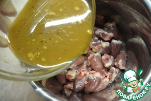 Сердечки получаются очень вкусными и сочными! И, благодаря пикантному маринаду, с горчичным вкусом и еле уловимым ароматом меда, блюдо становится незабываемым!