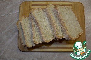 Хлеб (батон) нарезать толщиной примерно в 0,5 см.