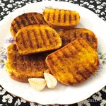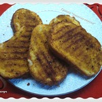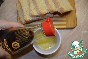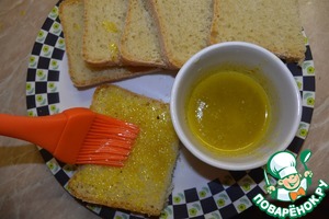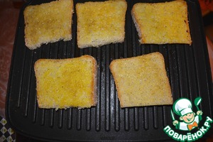 Разогреть гриль. Обильно смазать хлеб с двух сторон "золотой" смесью и