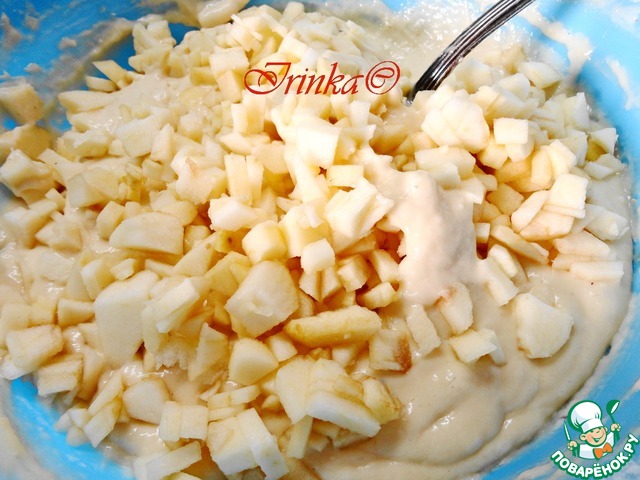 Яблоки чистим от кожуры и серединки, нарезаем мелкими кубиками.