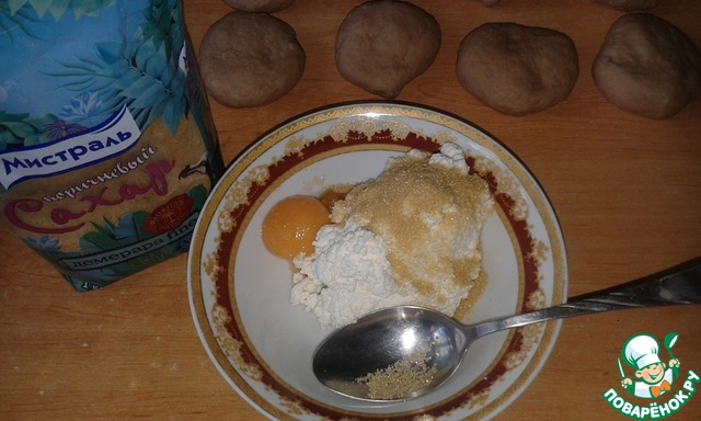 В это время приготовить начинку: смешать творог с желтком и 3 ст. л. тростникового сахара