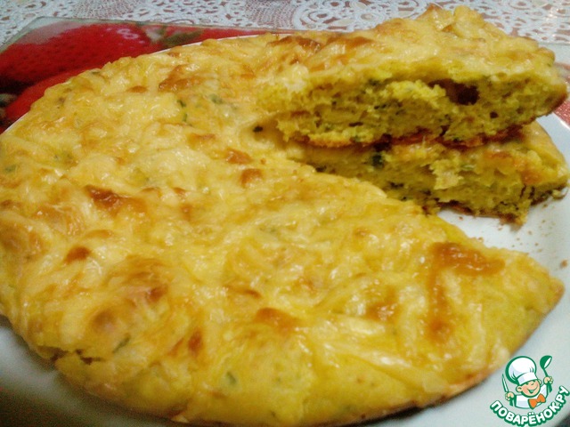 Солнечный цвет этого пирога - заслуга кукурузной муки и куркумы в тесте! Приятным вкусом же его насыщают весенняя зелень, лучок ну и конечно же хрустящая сырная корочка!