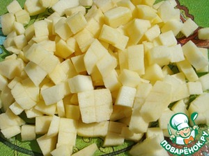 Яблоки очистить, удалить сердцевину и нарезать небольшими кубиками.