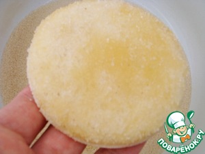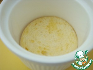 Положите по одному кружочку в каждый заранее смазанный маслом рамекин, стороной с сахарным песком вниз.