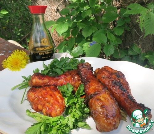 Рецепт от Джейми и Бадди Оливеров. Согласитесь, испортить куриные ножки или крылышки довольно сложно, а тем более, если они готовились на природе. Но, поверьте, попробовав мясо в таком соусе, Вы поймете, что и привычный куриный шашлычек может приятно удивить. Когда я готовлю этот соус и начинаю его пробовать - от меня нужно забирать кастрюльку, чтобы хоть что-то осталось для мяса.