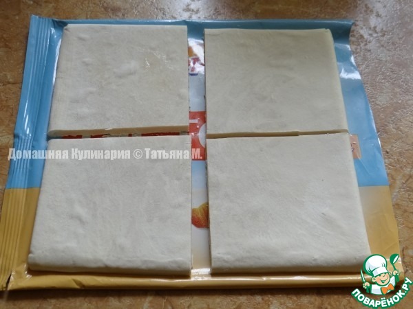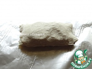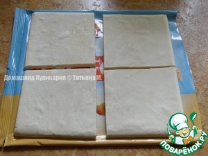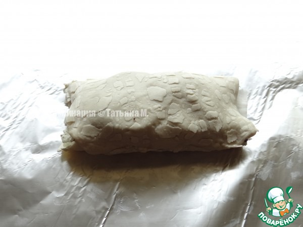 Раскатать 1 часть теста в тонкий прямоугольник, выложить его на фольгу.